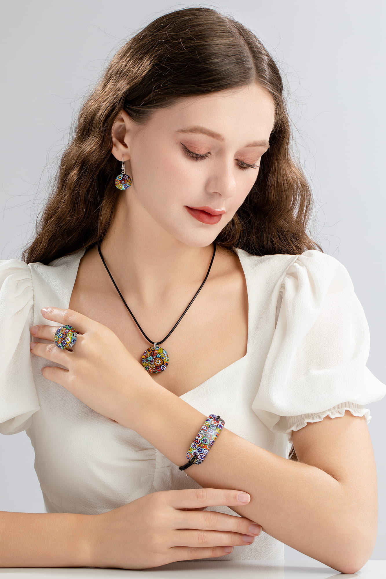 Biżuteria ze szkła weneckiego Murano wykonywana jest ręcznie, dlatego też każdy produkt jest niepowtarzalny i może różnić się np. rozmieszczeniem kolorów.