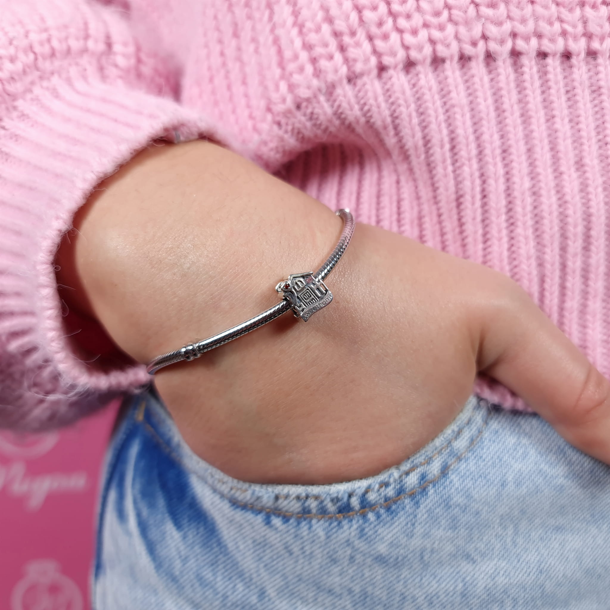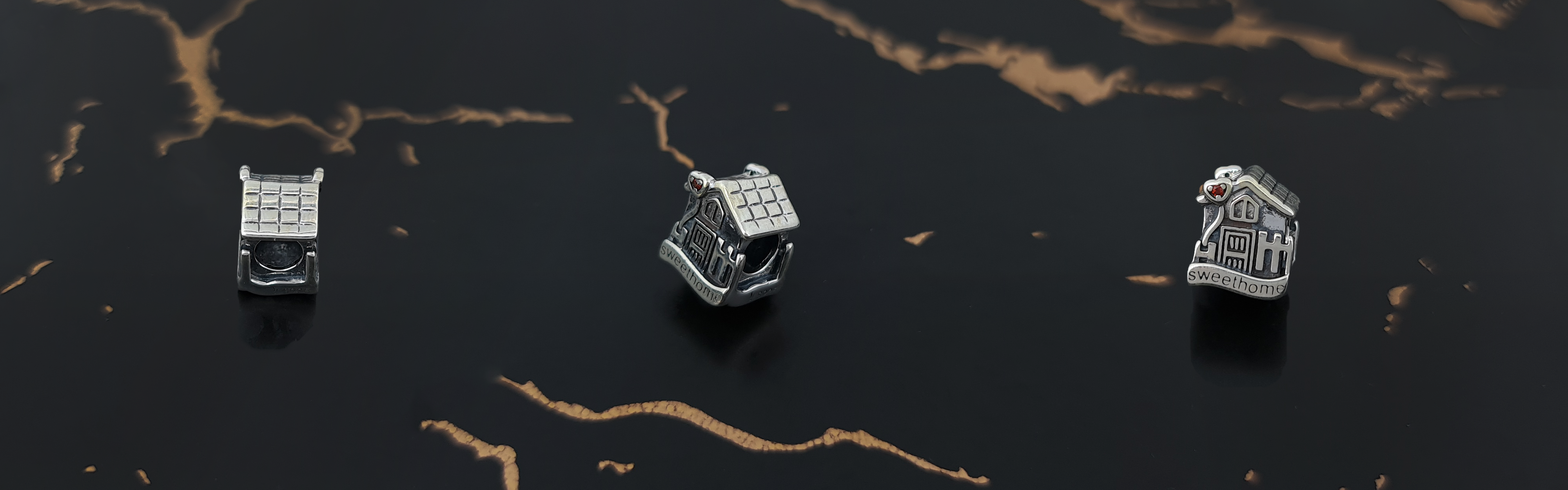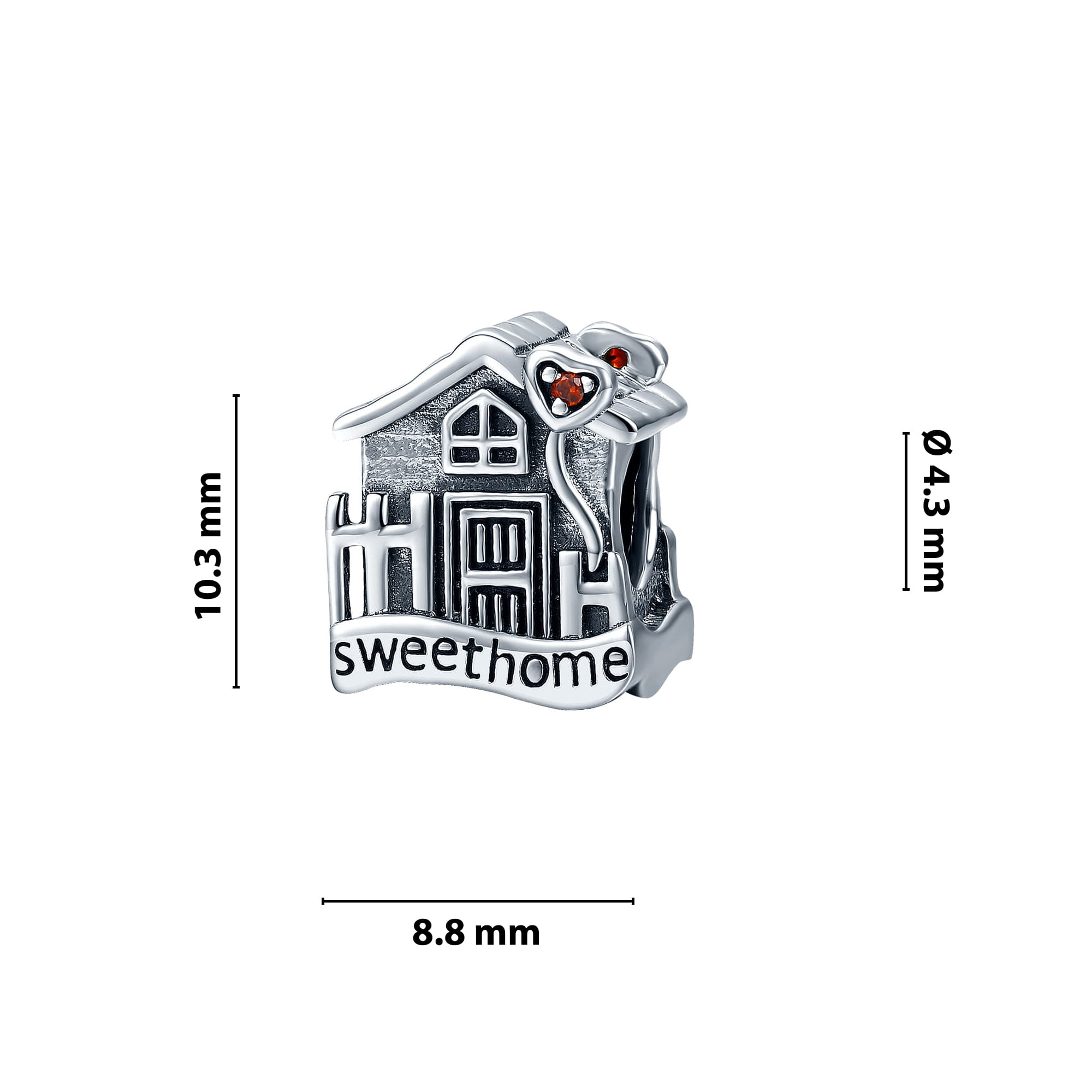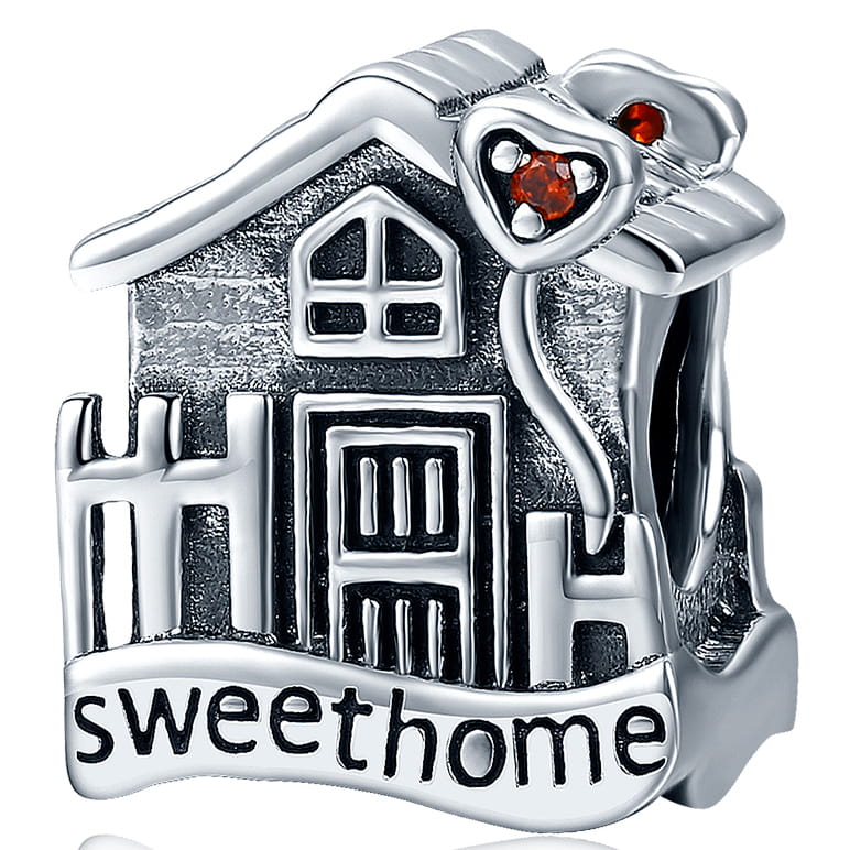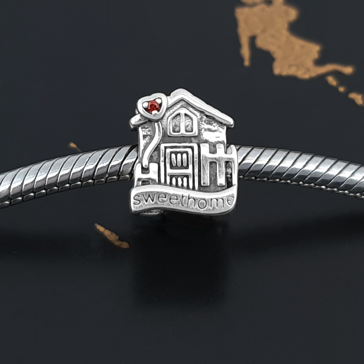 Piękna zawieszka charms z motywem domku do bransoletki modułowej charms, wykonana ze srebra 925.