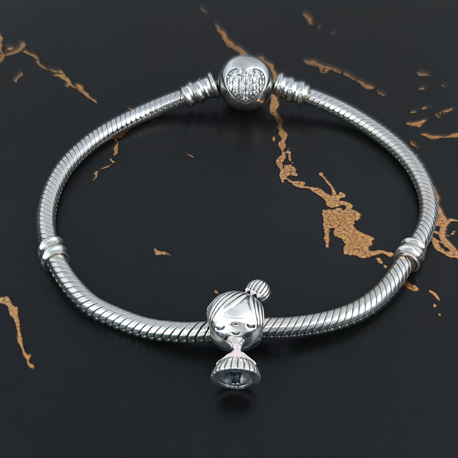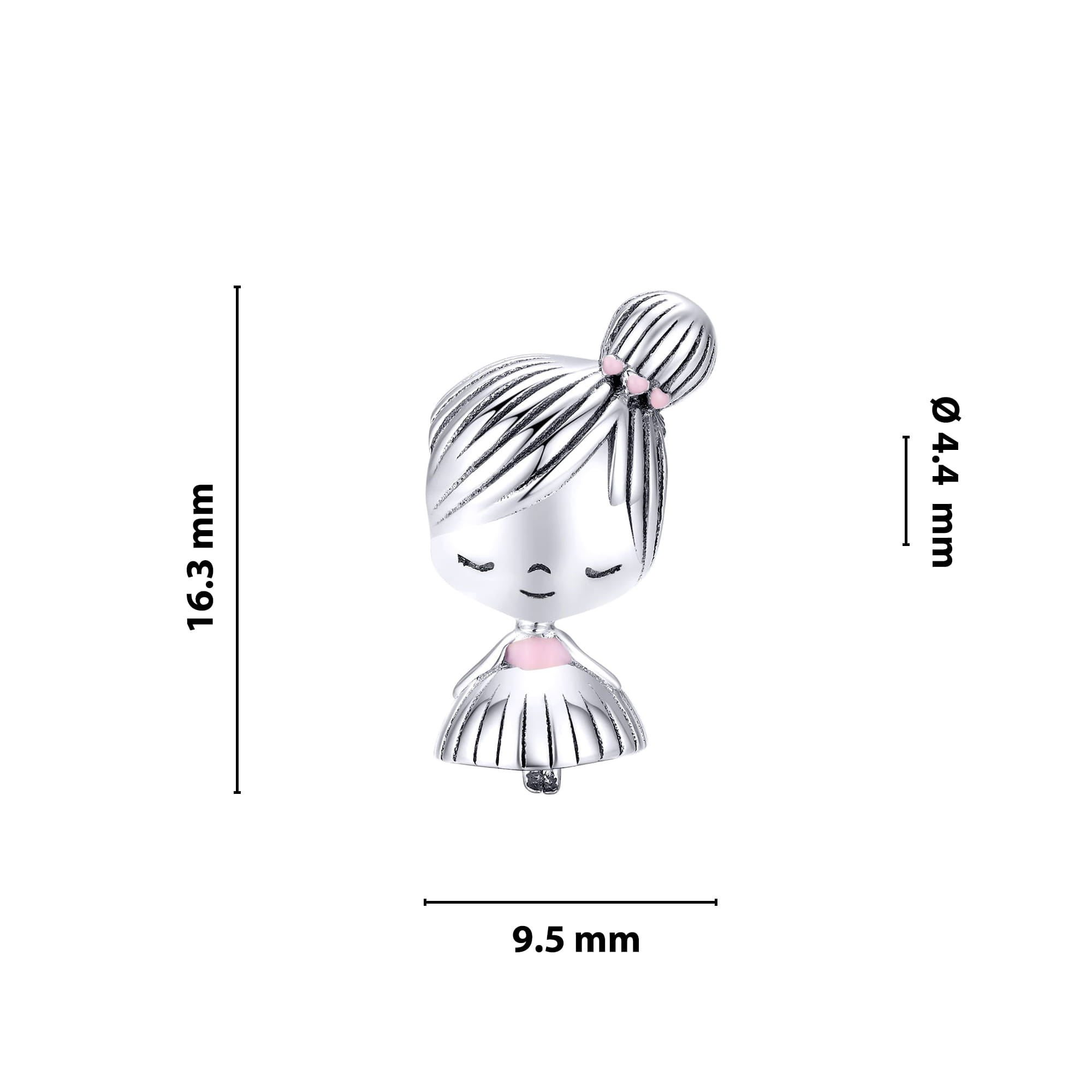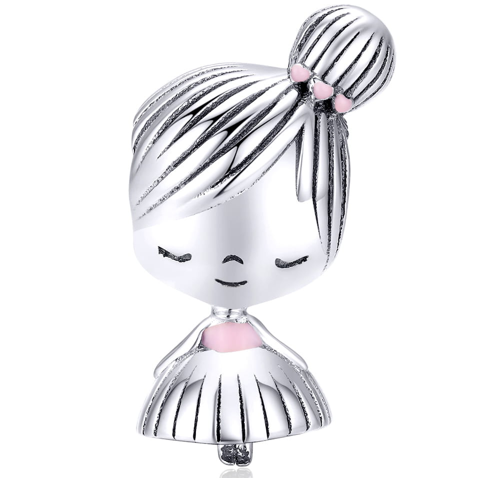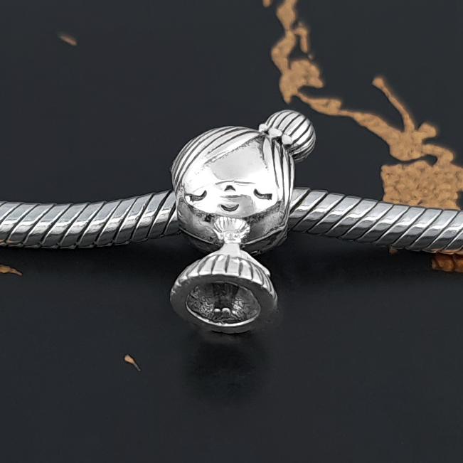 Piękna zawieszka charms z motywem dziewczynki do bransoletki modułowej charms, wykonana ze srebra 925.