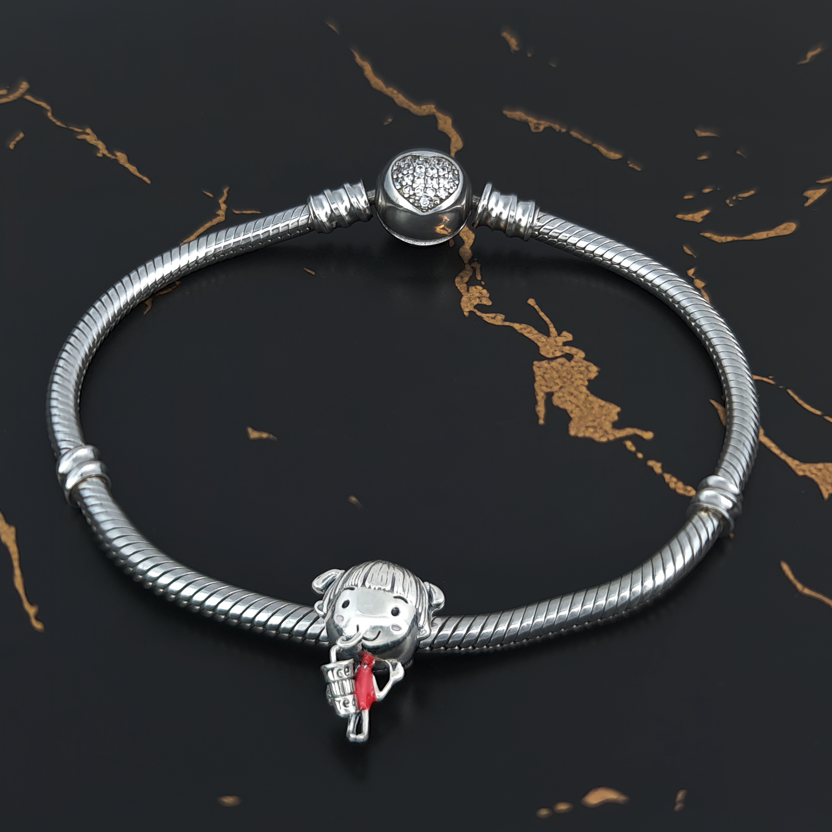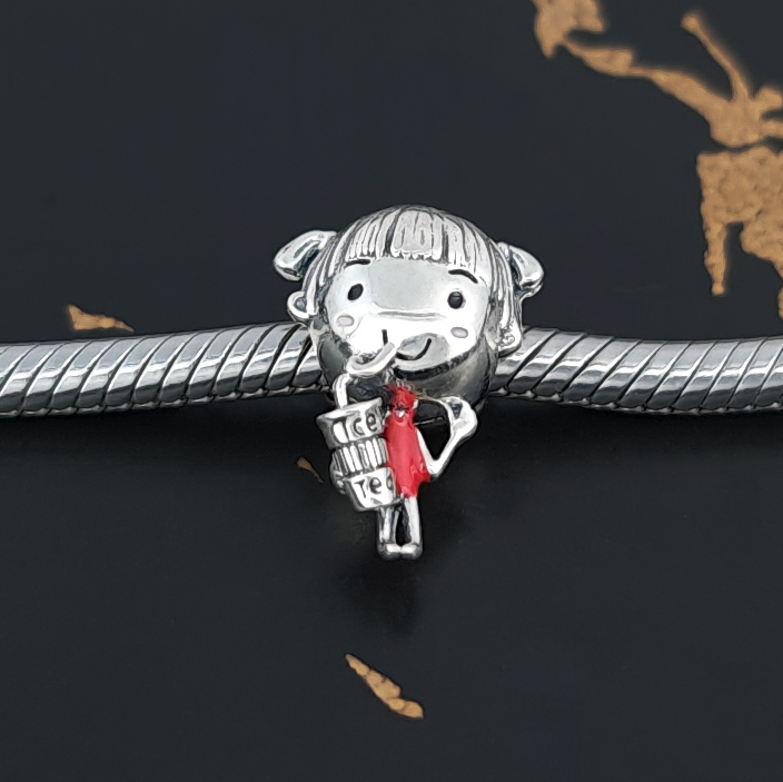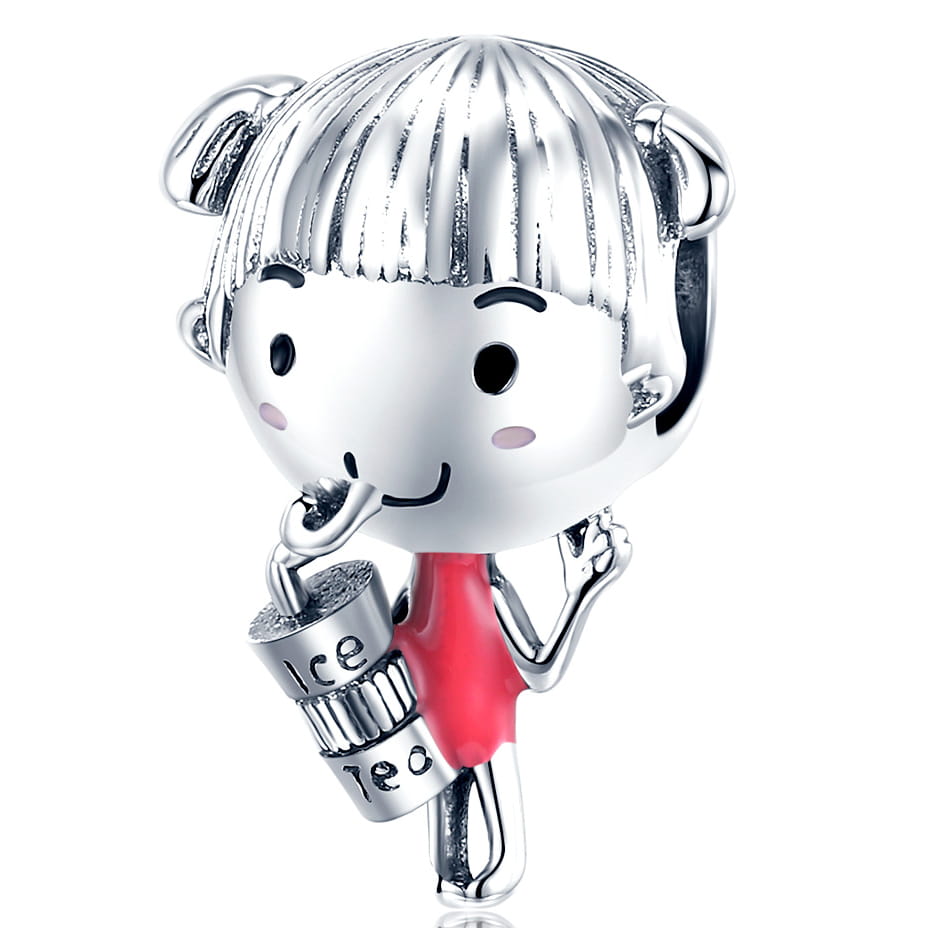 Piękna zawieszka charms z motywem dziewczynki do bransoletki modułowej charms, wykonana ze srebra 925.